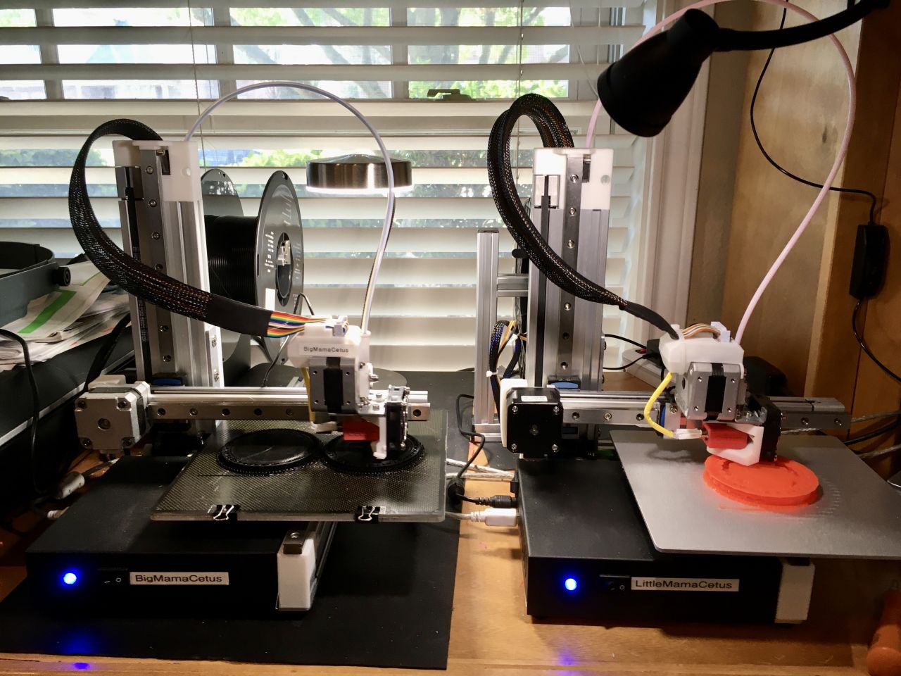 Does that create an official "Cetus 3D Printer Farm?" I am not particularly fond of production printing but I will have the capacity to run 6 printers at the same time. Three of them almost identical Cetus. Two are shown in the picture. Left is "BigMamaCetus" with the heated build surface and auto level. The right side is "LittleMamaCetus" The new Mk3 with no frills. The original Cetus is out of picture, on the floor.